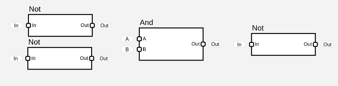 それでは、これを実際 にAnd、Not、Orを用いた回路にしてみましょう。一つの入力を複数の箇所で使いたい場合はInputを使って下さい。